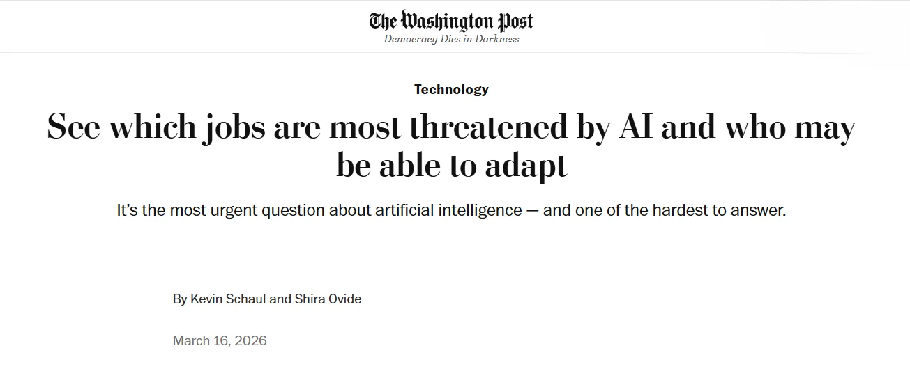 This excellent interactive piece from The Washington Post reinforces a critical shift: AI doesn’t replace roles, it reconfigures value creation inside roles
